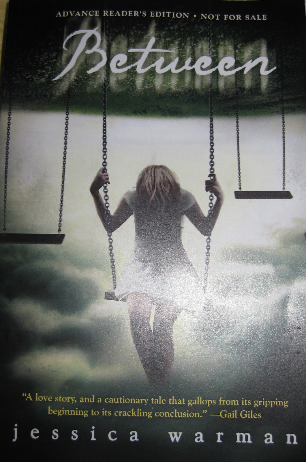 Just a few days ago, she agreed to be the subject of my first author interview ever on 1600 Words a Day, so stay tuned for that. She also was kind enough to send me an ARC of her upcoming novel, Between. Amazon is telling me Between is supposed to hit the stores in August and the ARC has an endorsement from Gail Giles, so we already know it's creepy. I can't wait! (No, really, that's not sarcasm. I really can't wait, but my husband won't let me stay up all night reading. Maybe I need to trade him in for a new model.)